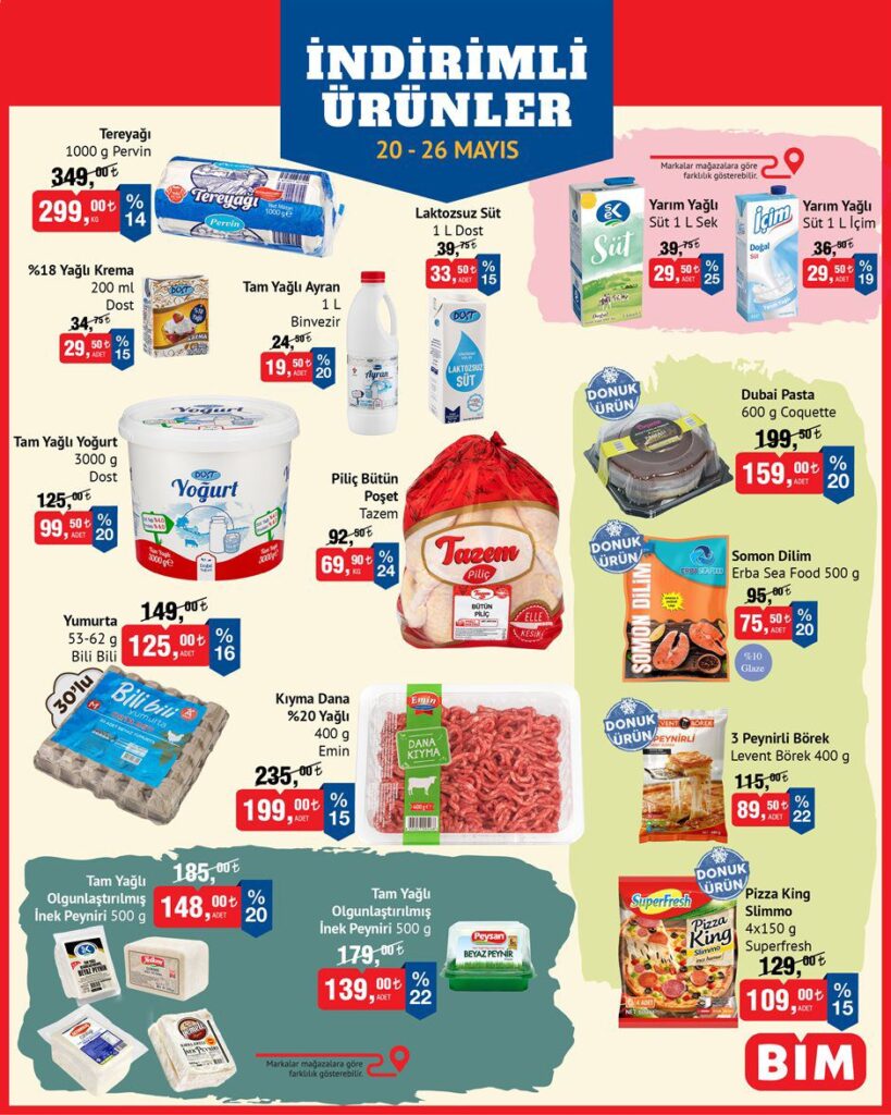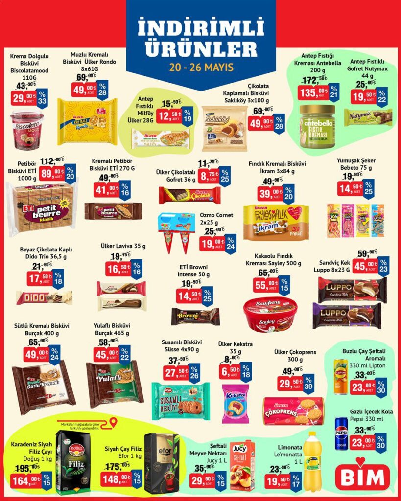 Tüm bu ürünler yalnızca 20-26 Mayıs 2025 haftası için geçerli olup, sınırlı stoklarla satılacaktır. Aşağıda yer alan görselleri inceleyerek alışveriş listenizi oluşturabilirsiniz. Haftalık güncellenen BİM aktüel kataloglarını takip etmek için sitemizi ziyaret etmeyi unutmayın!